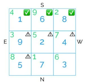 In the Flying Star chart for November 2022 above, the numbers in green are the annual stars for the current year (good until February 3, 2023), while the numbers in blue refer to November 2022’s monthly stars (good from November 7 to December 6, 2022).